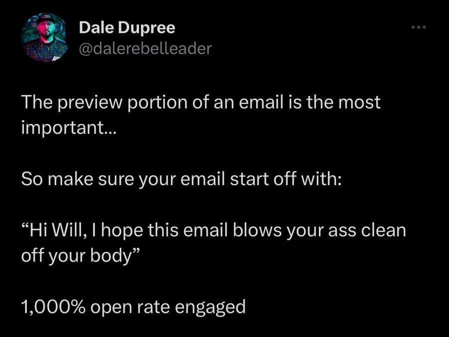 Quirky or catchy subject lines also only go so far. There are multiple emails we could send on this topic alone,